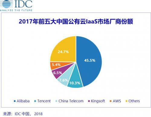 放眼全球,AWS在全球公有云市场遥遥领先的地位还无人能够撼动,而国内市场,据IDC调研数据显示,2017年排名前五的公有云IaaS厂商分别为阿里云、腾讯云、中国电信、金山云与AWS。